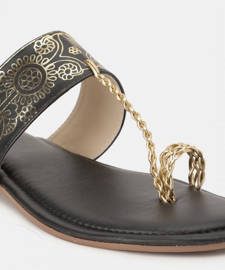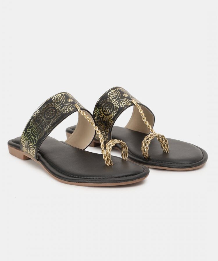 Black and Beige combination colors with the strap grip makes this Flat stylish and contrasting to wear with ethnic and western outfits.